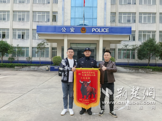 荆楚网(湖北日报)(通讯员:刘晨光、张轩)“真没想到钱这么快就追回来了,非常感谢王警官!你一定要收下这面“牛”旗,这代表着公众对你办案“牛力”的认可!”10月27日上午,襄阳高新区七里河派出所一家汽车租赁店老板王先生坚定地表示: 握着2000年起当警察的王紫涵的手,兴奋地说:10月18日晚,王紫涵店前一辆开门的汽车被盗,现金3万元丢失。何七里河派出所民警立即出击,星夜奔赴武汉。他们成功抓获3名犯罪嫌疑人,追回被盗资金2万余元,及时挽回公众损失。