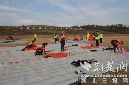 京中网讯(湖北日报)(通讯员 杜登艳)10月27日,舟山县通用机场训练空域开始绽放伞状花朵。湖北省跳伞队17名队员在这里进行了紧张有序的赛前训练,为11月中旬在这里举行的全国跳伞锦标赛做好准备。